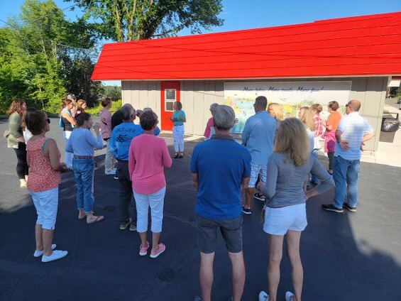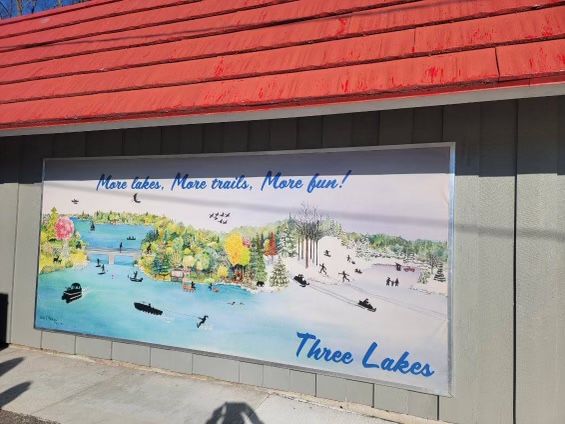 In March, 2024, Vicki’s mural “Welcome to Three Lakes” was prominently featured on the TV show, “We Talk Shopping.” Watch it here: https://www.wjfw.com/we-talk-shopping-march-mania-3-15-24/video_cef2b3ef-0a55-5b45-9189-e72176cc8507.html